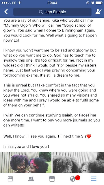 Kika Onyiba, 19-year-old Nigerian law student at Birmingham University, UK, passed away on Wednesday, April 12 due to some complications that arose from her ruptured appendix surgery.