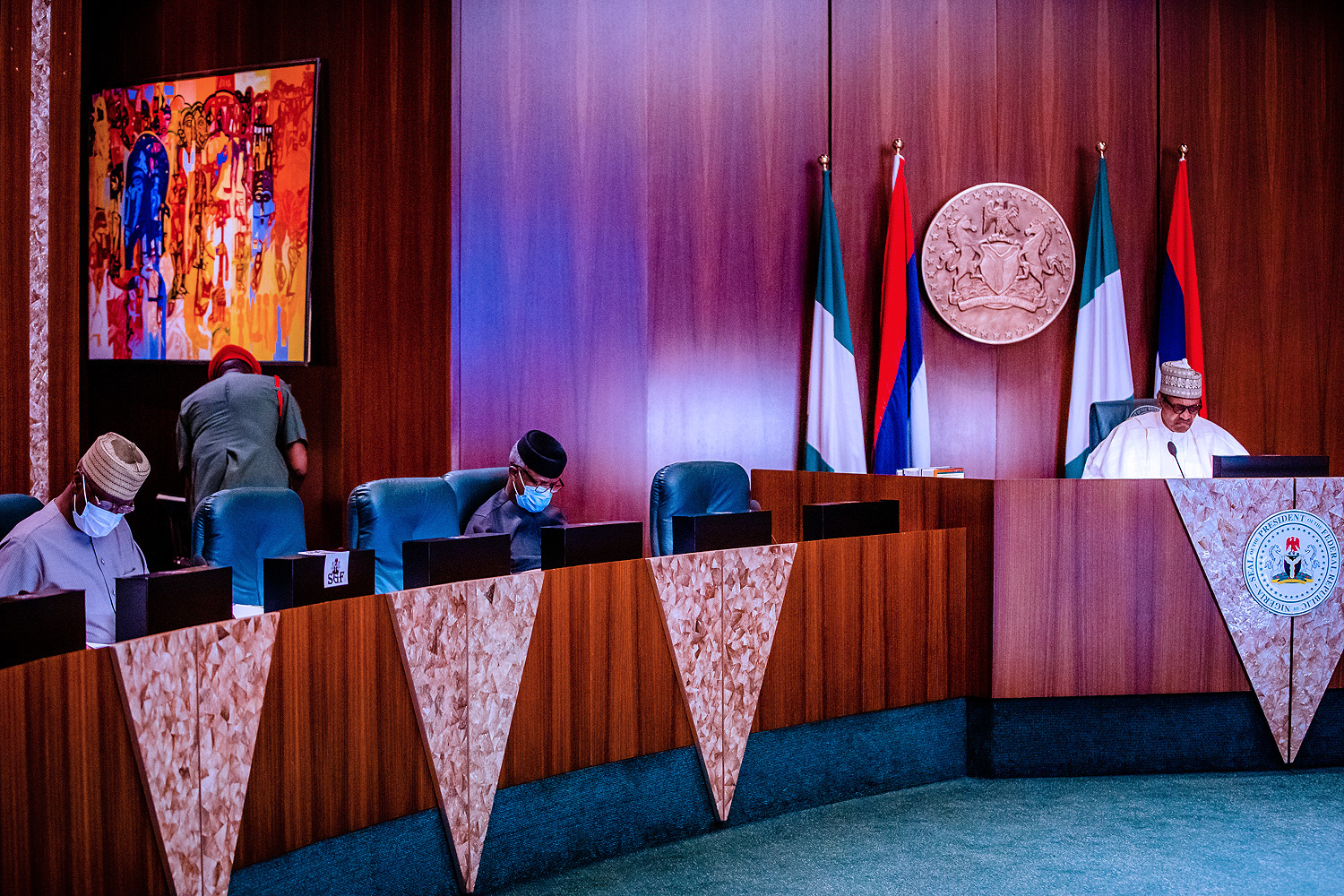The President presided over the virtual meeting from the Council Chamber of the Presidential Villa in Abuja.
