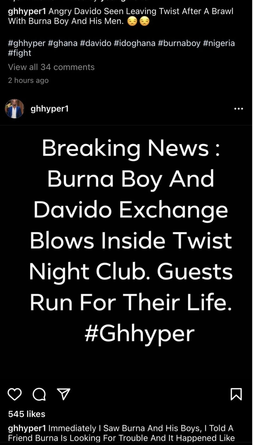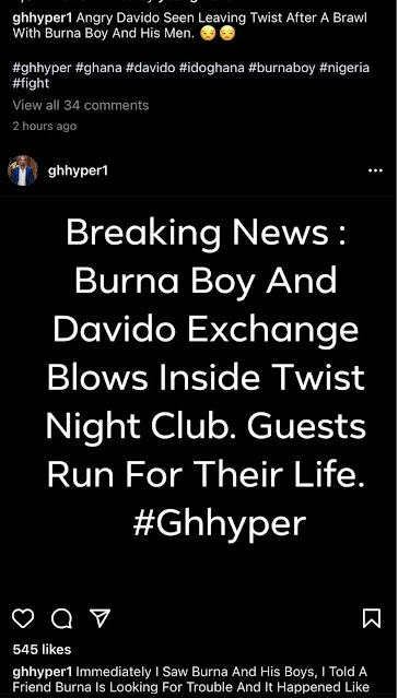 Nigerian musicians, Davido and Burna boy seems to have clashed at a night club in Ghana.