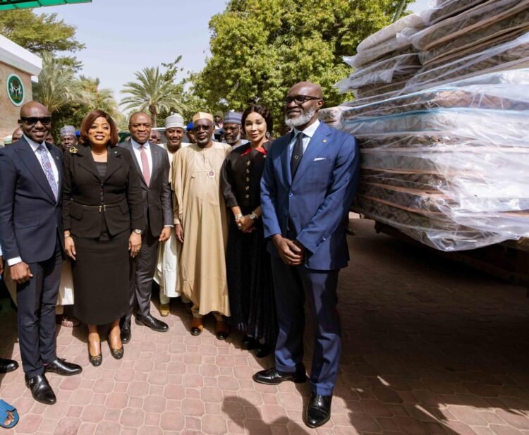 The donation of the relief materials comprising food items, including bags of rice, cartons of vegetable cooking oil, mattresses, and beverages were presented to the Governor of Jigawa State, Malam Umar A. Namadi, by a high-powered delegation of the Committee of Banks in Nigeria led by their Chairman and Group Managing Director/Chief Executive Officer (GMD/CEO), United Bank for Africa Plc (UBA), Dr. Oliver Alawuba.