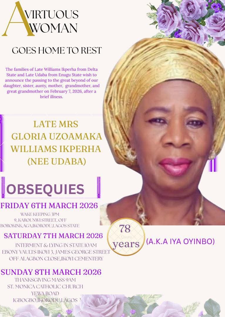 Glamtush reports that Nollywood actress Faithia Balogun has announced the burial arrangements for her mother, Gloria Williams.