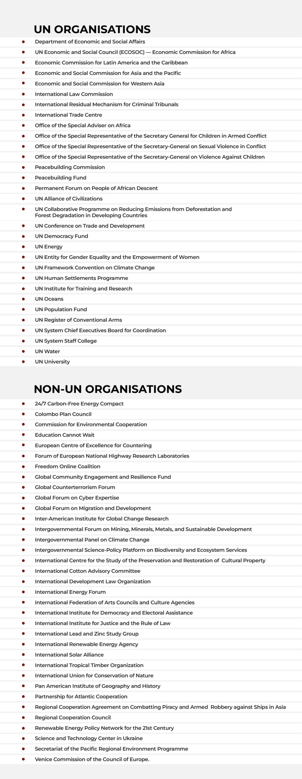 Of the 66 organisations, 31 are United Nations (UN) entities while 35 are non-UN affiliated.
