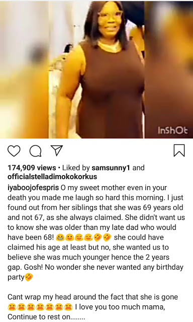 Iyabo who had announced that she lost her mom at 67 has now said she actually died at the age of 69.