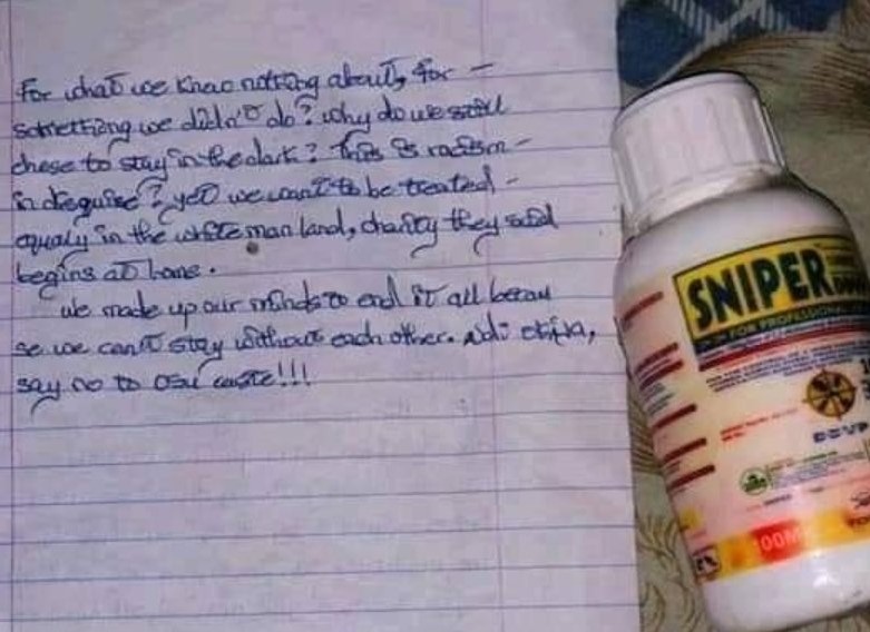 Lovers who resided in Okija, Anambra State decided to end it all because they could not live without each other because of the Osu caste system according to the suicide note they left behind.