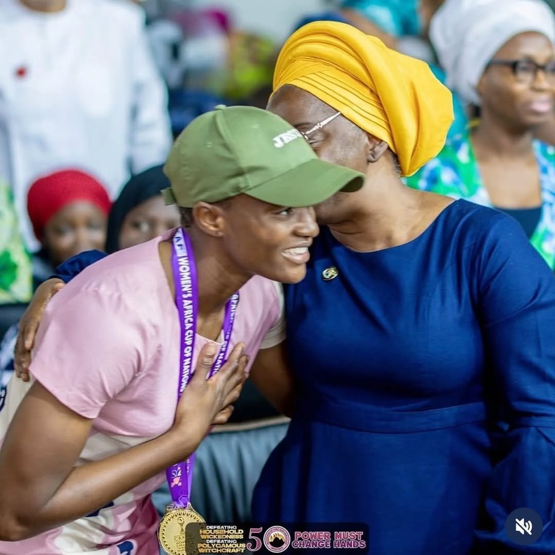 Rasheedat Ajibade has presented her WAFCON medal and awards to Pastor Daniel Olukoya and his wife.