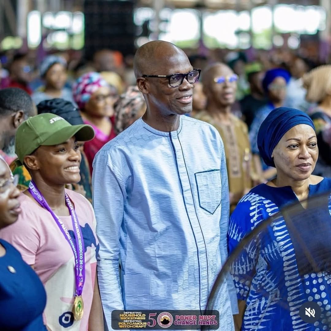 Glamtush reports that Rasheedat Ajibade has presented her WAFCON medal to Pastor Daniel Olukoya of the Mountain and Fire Ministries (MFM) and his Wife, Sade during the August Power Must Change Hands service.