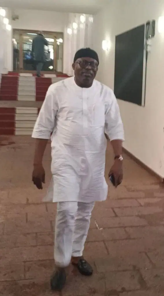 Fubara arrived the seat of power about 6:20p.m., clad in a white caftan and black cap.