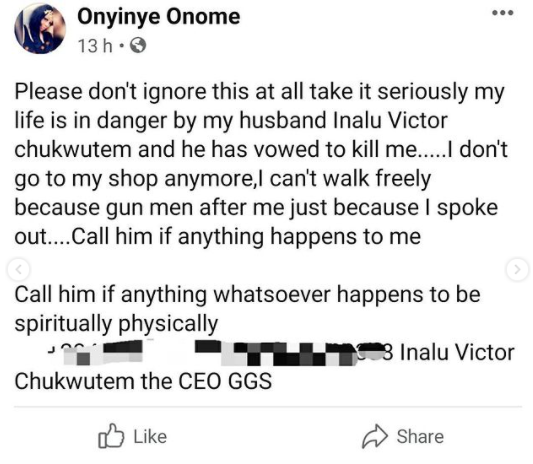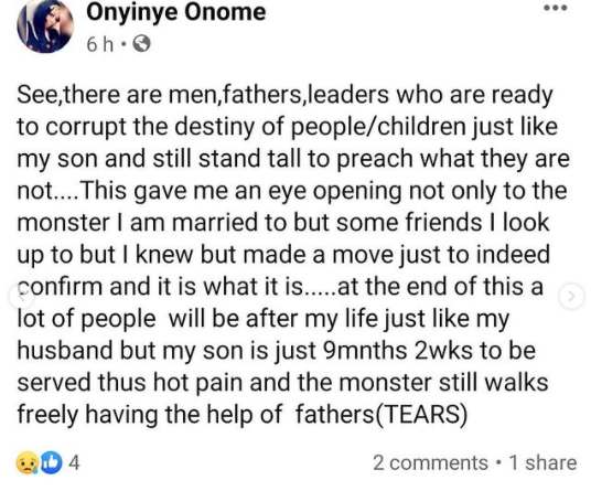 The woman named Onyinye Onome made the claims on Facebook.